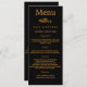 Cartão de menu de festa de aniversário. Personalize e adicione um nome, idade, data e menu. Um fundo negro. Letras coloridas com ouro. Voltar: adicione uma foto da cara de aniversário, fatos divertidos