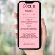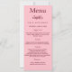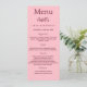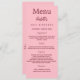 Cartão de menu de festa de aniversário. Personalize e adicione um nome, idade, data e menu. Um fundo cor-de-rosa. Adicione uma foto da aniversariante, fatos divertidos.