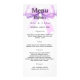Cartão de menu de festa de aniversário. Personalize e adicione um nome, idade, data e menu. Um fundo branco e um arco grande, de cor violeta.