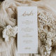 Este cartão de menu de caligrafia em ouro elegante é perfeito para um casamento simples. A design neutra apresenta uma carta minimalista decorada com a tipografia falsa de ouro romântica e caprichosa. Personalize com as bebidas disponíveis na sua recepção. Nota: Este design não apresenta folha de ouro real. É um gráfico de alta qualidade feito para se parecer com folhas de ouro.