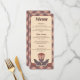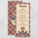 "Apresente seu banquete de casamento com estilo usando este elegante cardápio de casamento Art Déco. Com um sofisticado padrão floral de vitral em tons terrosos de terracota, mauve e rosa poeirado, este cartão adiciona um toque retrô-moderno às mesas da sua recepção. As cores do padrão de fundo intrincado são 100% ajustáveis para combinar perfeitamente com a paleta de cores do seu evento. Ideal para casamentos inspirados em vintage ou boho-chic que buscam uma suíte de papelaria coesa e artística."