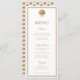 Refinado e eterno, este cartão de menu de casamento apresenta um sotaque elegante de concha dourada e um esquema clássico. Perfeito para casamentos costeiros ou de destino com tema sofisticado. Personalize com seus nomes e seleções de menu para um detalhe de mesa polido.
