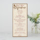 Realce a decoração adicionando um cartão de menu. Enquanto seus convidados aguardam ansiosamente a entrada da noiva e do noivo ou a apresentação do convidado de honra, eles podem encontrar um cartão de menu em seu cenário, acrescenta um toque agradável. Personalize e crie o menu adicionando o texto alterando o texto nos campos fornecidos. Você pode alterar o estilo, o tamanho e a cor da fonte, bem como o tipo de papel.