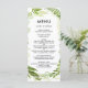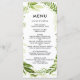 Um cartão de menu elegante e branco com folhagem verde de cor aquosa. Este cartão será perfeito para eventos de praia, verão, primavera e temas-boho. Itens correspondentes estão disponíveis.