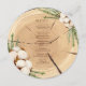 Abrace a beleza da natureza com o nosso elegante cartão de cardápio de madeira rústica cortado. Feito de madeira de qualidade superior, cada peça apresenta grãos e texturas únicos, definindo um cenário encantador para o seu dia especial. Este cartão de menu apresenta uma caligrafia requintada em uma fonte suave e sofisticada, detalhando de forma artística suas escolhas de menu cuidadosamente curadas. O acabamento natural complementa qualquer tema de casamento, desde casamentos de jardim ao interior íntimo de recepções internas, acrescentando um toque quente e convidativo.