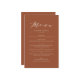 Cartão de menu personalizável com script elegante, tipografia simples e padrão de listras. Este cartão de cardápio é perfeito para qualquer tema de casamento e estação. Personalize adicionando nomes, data e detalhes do menu.