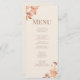 Aumente sua recepção de casamento com nosso Cartão de Menu Floral Monograma Dourado Moderno. Esse sofisticado design apresenta um arranjo delicado de ouro rosa e sotaque floral cremoso contra fundo de pó embebido com tom de pêssego. A elegante tipografia "Mocca Mousse" destaca seu monograma personalizado no topo, acrescentando um talento contemporâneo a esta refinada papelaria de casamento. Quer esteja hospedando um janto formal ou uma recepção chic boho, este cartão de menu adicionará um toque na moda e coeso às configurações de mesa. Totalmente personalizável para mostrar os pratos escolhidos, é o detalhe perfeito para impressionar seus convidados e juntar seu tema.