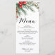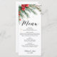 Esta elegante aquarela natalina Holly Berry Wedding Menu Card apresenta um delicado design com framboesa vermelha vibrante e verde sutil, perfeito para um casamento no inverno festivo. As pinceladas de aquarelas moles criam uma atmosfera sazonal bonita, enquanto a tipografia clássica, fácil de ler destaca as ofertas de refeições. Impresso em estoque de cartão de alta qualidade, ele adiciona um toque de charme e calor a qualquer celebração com tema de férias. Ideal para casais que buscam um toque refinado mas sazonal para sua recepção de casamento