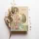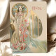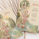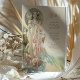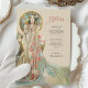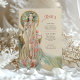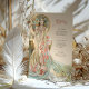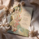 Este cartão de cardápio de casamento, inspirado no Art Nouveau, apresenta uma mistura cativante de elegância do eterno e artista intrincada. A frente apresenta uma figura graciosa adornada em vestes fluentes de creme, cor-de-rosa pincelado, azul-aqua e tons de coral macio, realçada por padrões florais de ornamentado e sotaques de ouro. A trabalho de arte irradia a sofisticação, com delicado equilíbrio de pastéis mudos e detalhe rico. A parte de trás apresenta o texto do menu em uma fonte serif elegante, harmonizando com o intrincado design. Perfeito para casamentos antigos, clássicos ou de temas pastel, este cartão de menu adiciona um talento artístico a qualquer recepção de casamento. Os arcos de ouro ornamentado e os motivos florais evocam um sentimento de luxo e charme.