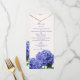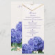 Cartão de Menu de Casamento Elegante com Flores de Hortênsia & Dourado. Itens correspondentes neste design estão disponíveis.