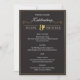 Cartão de Menu de Casamento Elegante Moderno Preto Dourado.