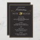 Cartão de Menu de Casamento Elegante Preto Moderno Dourado.