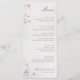 Este Cartão de Menu de Casamento Floral Boho apresenta flores silvestres sólidas, nomes em script e tipos de letra clássicos. As flores da primavera tornam este convite boêmio. Perfeito para um casamento inspirado no vintage, um casamento no jardim ao ar livre ou um casamento clássico e atemporal. Clique no botão Personalizar para personalizar os detalhes deste design. Encontre itens correspondentes na Coleção de Casamento Floral Boho.