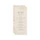 Cartão de menu de casamento refinado e elegante com detalhes florais de ouro delicados sobre fundo de marfim mole. O layout minimalista destaca cada curso com fontes sofisticadas de serif. Perfeito para recepções formais e casamentos inspirados em vintage com um toque clássico.