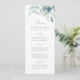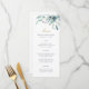 Cartões de cardápio impressos. Use as ferramentas de design para personalizar o layout, as cores de fundo e o texto com os detalhes do menu de casamento. Este elegante design apresenta uma borda floral de cor d'água de verde suculento e floresce com texto dourado e marinho.