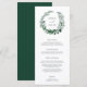 Nosso cardápio de inverno mostra seus cursos iniciais, entretenimentos e sobremesas em letras elegantes, com seus nomes e data de casamento cercados por uma coroa botânica verde de cor d'água. Coordena-se com a nossa coleção de casamento da Floresta Selvagem. Use os campos modelo para adicionar as informações do menu e reposicionar os elementos, se necessário.