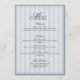 Cartão de Menu de Casamento Listrado Azul