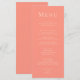 Adicione um toque de elegância à sua capa de mesa de casamento com este Cartão de Menu Minimalista de Casamento Coral Rosa. Projetado com um fundo cor-de-rosa quente e tipografia de coral mole, este cardápio combina minimalismo moderno com uma estética romântica refinada. Apresentando uma fonte sofisticada de serifa com delicados sotaques de script, ela oferece um design elegante, mas eterno, que complementa qualquer tema de casamento contemporâneo. Totalmente personalizável, este cartão de menu permite personalizar todos os detalhes para corresponder à decoração do casamento, garantindo uma experiência coesa e na moda para os seus convidados.