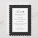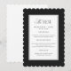 Este elegante cartão de menu de casamento preto e branco apresenta uma borda recortada ousada com tipografia clássica refinada para um visual atemporal e formal. A paleta monocromática nítida torna-o perfeito para um casamento de gala, recepção moderna, cerimônia na igreja ou celebração minimalista chic. Uma escolha de menu sofisticada para casais que planejam uma mesa elegante, clássica e elevada.