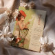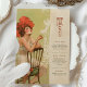 Traga a elegância do eterno para a sua mesa de casamento com este cartão de cardápio inspirado em Art Nouveau. Apresentando uma figura impressionante, adornada com uma corajosa manchete vermelha e sentada em uma cadeira verde-safra, a design expele sofisticação e charme. O creme macio e o fundo verde sábio equilibram harmoniosamente os sotaques vermelhos vibrantes, criando um atrativo visual. Perfeito para casamentos antigos, românticos ou com temas jardins, este cartão de menu personalizável combina o artista com funcionalidade, fazer-o um detalhe inesquecível para o seu dia especial.