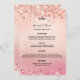 Um cartão de menu de casamento elegante e glamoroso. Personalize e adicione seus nomes, data e o menu do casamento. Um fundo gradiente rosa dourado e rosa, decorado com confetes.