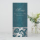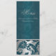 Cartão de Menu de Casamento Silver and Teal Damask