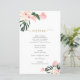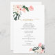 Cartão de cardápio de casamento cor-de-rosa tropical