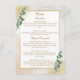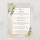 Eleve sua recepção de casamento com este cartão de menu luxuoso. Parte da nossa elegante coleção verde e dourada, esta design apresenta brilho dourado, texturas de aquarela macia e verde realista de eucalipto. É a maneira perfeita de apresentar suas escolhas culinárias com estilo e sofisticação. Personalize este menu para mostrar as opções de comida e bebida para uma experiência de convidado verdadeiramente personalizada.