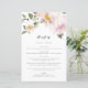 Adicione um toque floral elegante à decoração das mesas do seu evento com este cartão de menu floral personalizável. Ele apresenta um buquê floral em aquarela com flores cor-de-rosa e folhagens. Personalize este cartão de menu floral em aquarela adicionando seus próprios detalhes. Este cartão de menu cor-de-rosa é perfeito para casamentos de primavera e inverno, chá de noiva, chá de bebê e muito mais.