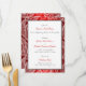 Um impressão elegante de renda branca paisley é sobreposto em um rico impressão de cetim vermelho para uma elegante placa de menu inspirada na Índia, ideal para recepções de casamento e festas.