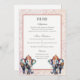 Celebre sua jornada culinária com este elegante menu janto de recepção de casamento! Apresentando um design floral de elefante cativante, símbolo de força e bençãos em casamentos indianos, este menu coloca o palco para uma noite deliciosa e memorável. Personalize a frente do menu com seus pratos cuidadosamente curados, mostrando os sabores de seu dia especial. A parte de trás do menu oferece um espaço único para personalizar com um sincero agradecimento aos seus convidados por partilharem a sua alegria, ou talvez alguns fatos divertidos sobre o casal feliz, acrescentando um toque de personalidade à sua celebração de casamento. Este belo cardápio não só tantalizará as papilas gustativas dos seus hóspedes, como também servirá como uma preciosa lembrança dos sabores e festividades da sua noite de núpcias.