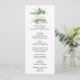 Este cartão de janto de ouro e eucalipto verde é perfeito para um casamento simples. O design apresenta cor d'água verde, dourada, folhas azuis e flores pintadas manualmente, bem como flores arrumadas em buquês e quadros geométricos elegantes. Este menu pode ser usado para recepção de casamento, janto de ensaio, chá de panela ou qualquer evento.