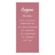 Programa e cartão de menu. Personalize e adicione seu nome, data e menu. fundo rosa dourado, texto branco.