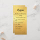 Programa e cartão de menu. Personalize e adicione um nome/evento, data e menu. Um fundo de aparência dourada, texto preto.
