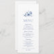 Adicione um toque de elegância do eterno à sua mesa de casamento com este Cartão de Menu Floral Azul Dusty. Apresentando flores de aquarela macia em tons azuis serenos e tipografia serif clássica, este menu complementa perfeitamente os temas românticos e refinados do casamento. Ideal para exibir suas ofertas deliciosas e elevar sua configuração de mesa com um detalhe gracioso.