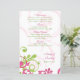 Você pode personalizar o texto neste casamento floral cor-de-rosa, verde e branco ou no cartão de menus especial. Para alterar o texto, use a opção personalizar. Para alterações mais abrangentes no menu, incluindo alterações na fonte, tamanhos de fonte, cor de fonte ou posicionamento de texto, use a opção personalizar. Uma bela escolha para um casamento elegante na primavera ou no verão ou num clima quente. Também faria um belo cardápio para qualquer outra ocasião especial como aposentadoria, aniversário ou festa de aniversário.