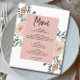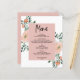 Este cartão de menu floral romântico amigável do orçamento é uma forma bela e barato de adicionar elegância ao seu evento. Apresentando florais macios em cor de pêssego e um verde delicado, ele cria uma atmosfera quente e convidativa perfeita para casamentos, chás de panela ou encontros íntimos. A delicada paleta de cores e a graciosa design oferecem um toque romântico sem comprometer o estilo. Impresso no estoque de cartão de qualidade, este cartão de menu é charmoso e prático, ajudando-o a guiar seus convidados através da refeição enquanto complementa sua decoração geral.