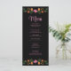 Crie uma experiência de jantar cativante com a nossa "Cartão de Menu de Casamento Floral Fiesta Mexicana Colorida" contra um pano de fundo preto impressionante. Este cardápio mostra flores aquáticas pintadas à mão vibrantes em tons de laranja, vermelho e roxo, incorporando o espírito vivacioso do México. O elegante texto escuro se destaca em relação ao fundo ousado, apresentando suas ofertas de menus curados com sofisticação. Elevem o ambiente da sua recepção de casamento com este cartão de menu chic e festivo, combinando o fascínio visual e a funcionalidade para uma celebração memorável.