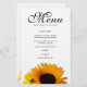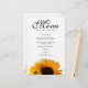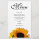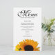 Um cartão de cardápio floral alegre, mas elegante, com uma foto de girassol. Também está disponível um desinfetante manual correspondente. Uma escolha encantadora para festas de outono, verão ou rústicas, casamentos, noivas e chás de fraldas, ou mesmo empresas como restaurantes. Disponível em papel de reciclado para um alternativo ecológico.