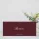 Este elegante cartão de cardápio de casamento apresenta um rico fundo burgundy com serifa refinada e tipografia de guião, criando um design ousado mas eterno. O layout inclui seções dedicadas para iniciantes, entrée e sobremesas, oferecendo aos seus hóspedes uma prévia na moda da experiência de jantar da noite. Perfeito para recepções formais, casamentos vinícolas, ou celebrações clássicas da noite, este design de menu coordena-se perfeitamente com a suíte de papelaria de casamento "Sabrina". Totalmente personalizável — edite os cursos, nomes e data para ajustado de sua celebração. ・ Os Mockups para este design foram criados usando a IAI de Midjort.