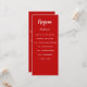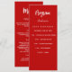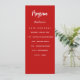 Programa e cartão de menu. Personalize e adicione seu nome, data e menu. Fundo vermelho, texto branco.