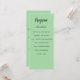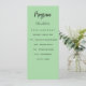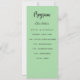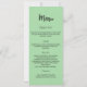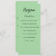 Programa e cartão de menu. Personalize e adicione seu nome, data e menu. Fundo verde-mint, texto verde-escuro.