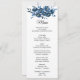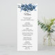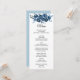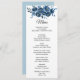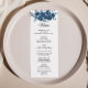 Este moderno cartão de janto floral é perfeito para um casamento de destino. Este elegante design floral pintado à mão apresenta flores azuis, azuis escuras e indigo graciosas com folhas verdes, representando majestosa beleza natural. Este menu pode ser usado para recepção de casamento, janto de ensaio, chá de panela ou qualquer evento.