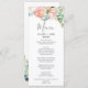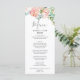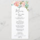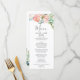 Este cartão de cardápio jante das flores românticas é perfeito para um casamento elegante. O design floral apresenta flores cor-de-água, cor-de-rosa-claro, cor de pêssego e branca em cascata. Este menu pode ser usado para recepção de casamento, janto de ensaio ou qualquer evento.