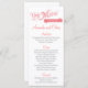Cartão de Menu com tema "Love Story" em Coral com sotaques de Cinza.