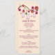 Realce a decoração adicionando um cartão de menu. Enquanto seus convidados aguardam ansiosamente a entrada da noiva e do noivo ou a apresentação do convidado de honra, eles podem encontrar um cartão de menu em seu cenário, acrescenta um toque agradável. Personalize e crie o menu adicionando e alterando o texto nos campos fornecidos. Você pode alterar o estilo, o tamanho e a cor da fonte, o tipo de papel, bem como a cor do plano de fundo.