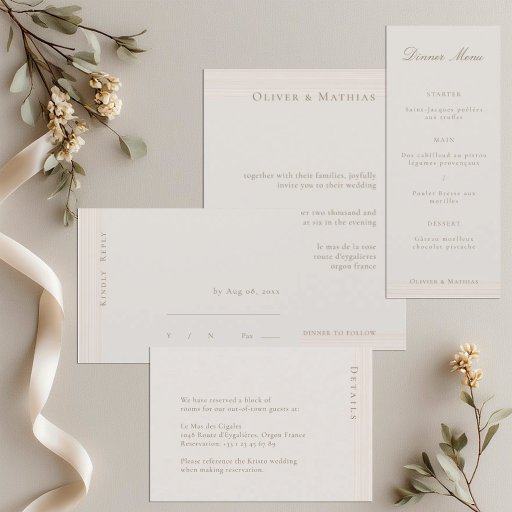 Um design minimalista moderno com listras sutis em um fundo de champanhe com tipografia em dourado.