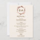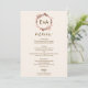 Um simples cartão de cardápio de película floral rosa de ouro floral monograma leve de pêssego. Fácil de personalizar com seus detalhes. Cartão de cardápio de casamento de boho moderno editável, personalizável, cartão de cardápio de fotos de Arch, letra escrita à mão de caligrafia, simples, elegante.