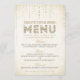 Este lindo design de cartão de menu da The Spotted Olive™ apresenta um belo fundo dourado suave com uma imagem de gemas cintilantes fluindo do topo e a palavra "Menu" tipografada de forma estilosa, apresentando a palavra "Shower" preenchida com uma imagem de purpurina dourada. POR FAVOR, OBSERVE: ESTE DESIGN APRESENTA APENAS UMA IMAGEM IMPRESSA DE PURPURINA; NÃO HÁ PURPURINA FÍSICA USADA OU INCLUÍDA; NÃO HÁ EMBELEZAMENTOS. Copyright 2013-Atual | The Spotted Olive™ | Todos os Direitos Reservados