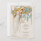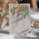 Aumente sua celebração de casamento com este doce cartão de cardápio de bebidas inspirado no Art Nouveau. A frente mostra uma ilustração cativante de uma mulher graciosa em um vestido branco fluido adornada com delicados sotaques cor-de-rosa, contra um pano de fundo vibrante de laranja-ouro e folhagem verde. A trabalho de arte detalhada, com seus intrincados elementos botânicos, evoca um sentido de elegância eterno. O verso apresenta um emblema botânico refinado em ouro e metal, acrescentando um toque sofisticado. Este cardápio elegantemente lista uma seleção de coquetéis, cerveja, vinho e espíritos, fazer-o perfeito para casamentos e outras ocasiões especiais. A mistura de design clássico e cores ricas deixará uma impressão duradoura nos seus convidados.